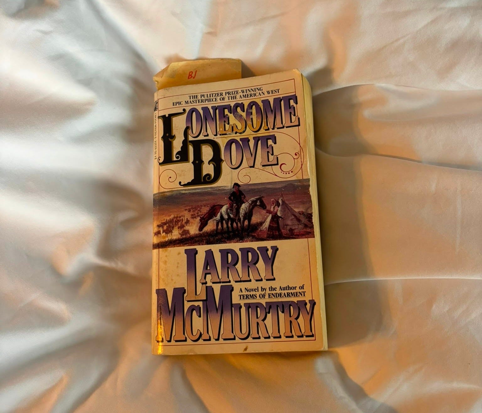 On my block this summer, I came across some books spread out for a sidewalk giveaway, among them a weathered copy of Lonesome Dove. It was worn beyond the point of being accepted by any good used bookstore—a mass-market paperback that looked as if a past owner took its portability as a statement of purpose and carried it absolutely everywhere. This was clearly a book that someone had eaten a few meals with. I’d dismissed years of recommendations to read Lonesome Dove, picking it up in bookstores only to put it down, unwilling to commit to a 900-page Western. But for whatever reason, this battered copy on my street got me, and I brought it home.